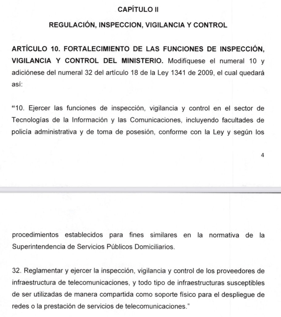 Valencia señaló que el artículo 10 del borrador contempla la posibilidad de que MinTIC ejerza inspección, vigilancia y control sobre proveedores de infraestructura de telecomunicaciones y, eventualmente, sobre medios de comunicación. La congresista advirtió que, de aprobarse estas disposiciones, podrían afectar la independencia de los medios y la libertad de prensa, especialmente en plena época electoral.