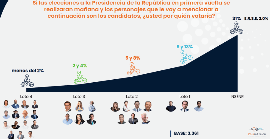 Según la encuesta Polimétrica de Cifras & Conceptos, realizado entre el 27 de octubre y el 4 de noviembre en 54 municipios del país, los tres aspirantes concentran entre 9 % y 13 % de las preferencias, lo que los posiciona como las primeras figuras visibles en una contienda aún abierta. No obstante, el 31 % de los encuestados aseguró no saber por quién votará, reflejando el amplio margen de indecisión entre los ciudadanos.