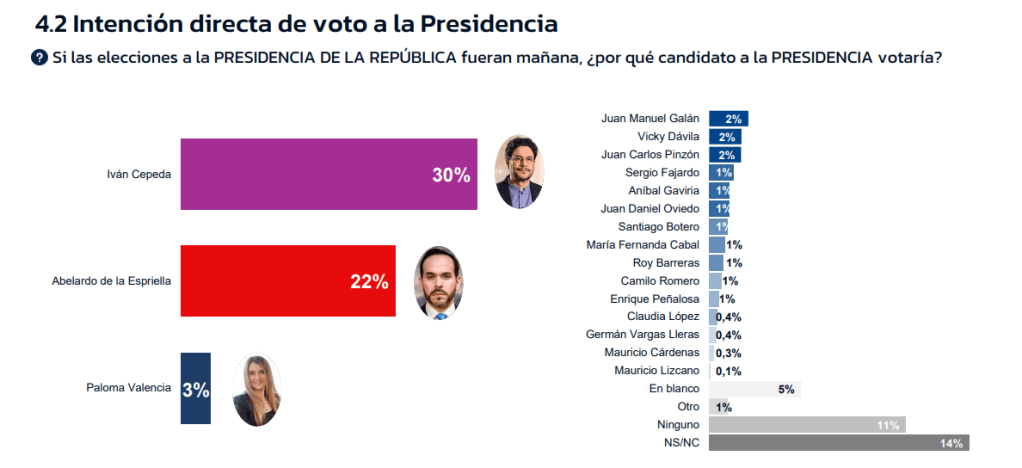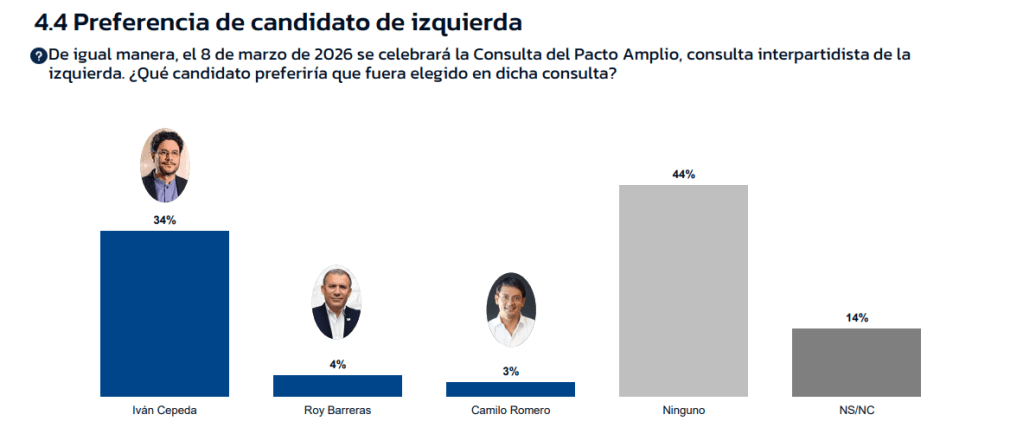 Estos resultados perfilan a Cepeda como el virtual candidato único de la izquierda para la primera vuelta presidencial, con escasa competencia interna y un respaldo que, según la medición, supera ampliamente al de cualquier otro aspirante de su sector.