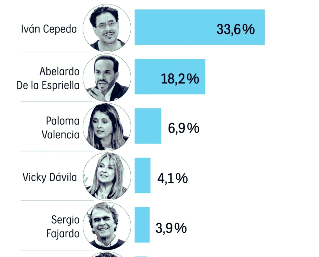 Iván Cepeda encabeza la intención de voto presidencial con el 33,6 %, según la más reciente encuesta Percepción País de Guarumo y Ecoanalítica para El Tiempo. Le siguen Abelardo de la Espriella con 18,2 % y Paloma Valencia con 6,9 %, en un escenario aún marcado por altos niveles de indecisión.