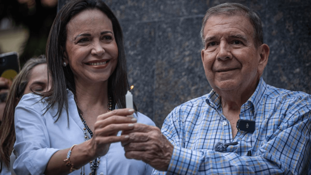 Machado, fundadora del movimiento Vente Venezuela, reclama la conducción política del proceso de transición y se presenta como presidenta legítima, argumentando que la oposición obtuvo cerca del 70 % de los votos en las elecciones presidenciales del 28 de julio de 2024, de acuerdo con actas independientes. Aquellos comicios fueron proclamados oficialmente a favor de Maduro por el Consejo Nacional Electoral, en medio de denuncias de fraude masivo, mientras Machado permanecía inhabilitada y el entonces candidato unitario, Edmundo González, terminó exiliado en Estados Unidos.