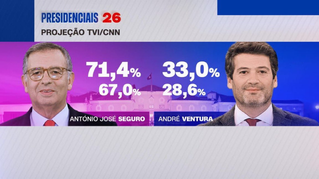 Con más del 99% escrutado, Seguro obtuvo entre el 65,7% y el 66,8% de los sufragios, frente al 33–34% de Ventura, líder del partido Chega, una diferencia mayor a la prevista por los sondeos. El balotaje se celebró el 8 de febrero después de que en la primera vuelta, el 18 de enero, el candidato socialista ya hubiera encabezado la votación con cerca del 31%, seguido por Ventura con alrededor del 23–24%.