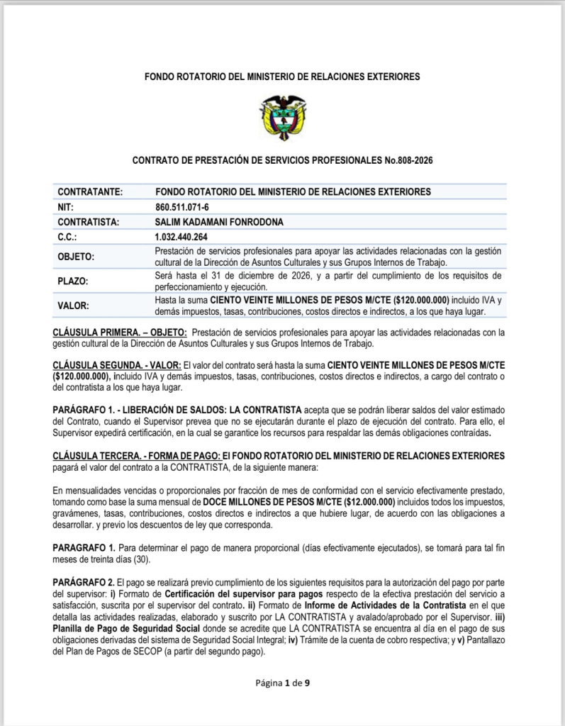 - Ministerio del Interior: contrato superior a $70 millones para apoyar la difusión de la política pública de libertad religiosa.