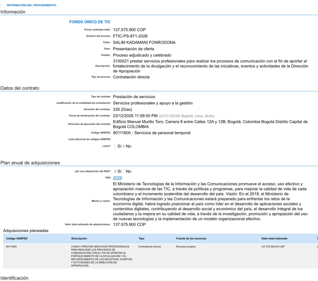 La discusión pública comenzó luego de revelarse que Salim Kadamani, diseñador y gestor de moda, suscribió varios contratos de prestación de servicios relacionados con comunicación y apropiación digital con entidades del Gobierno, que en conjunto rondarían los $380 a $390 millones.