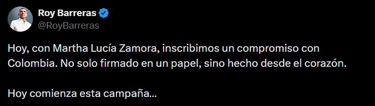 La formalización ante la Registraduría se produjo un día después de que Barreras anunciara públicamente a Zamora como su compañera de fórmula durante el Congreso Nacional de Municipios, realizado en el Centro de Convenciones de Cartagena. En ese evento, el candidato presentó a la jurista como una figura clave para respaldar el componente institucional de su campaña.