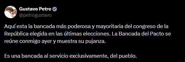 Bogotá, 14 de marzo de 2026 – El presidente Gustavo Petro se reunió con la bancada del Pacto Histórico para analizar los resultados preliminares de las elecciones legislativas y coordinar la estrategia de la coalición durante el proceso de escrutinios que sigue en curso en varias regiones del país.