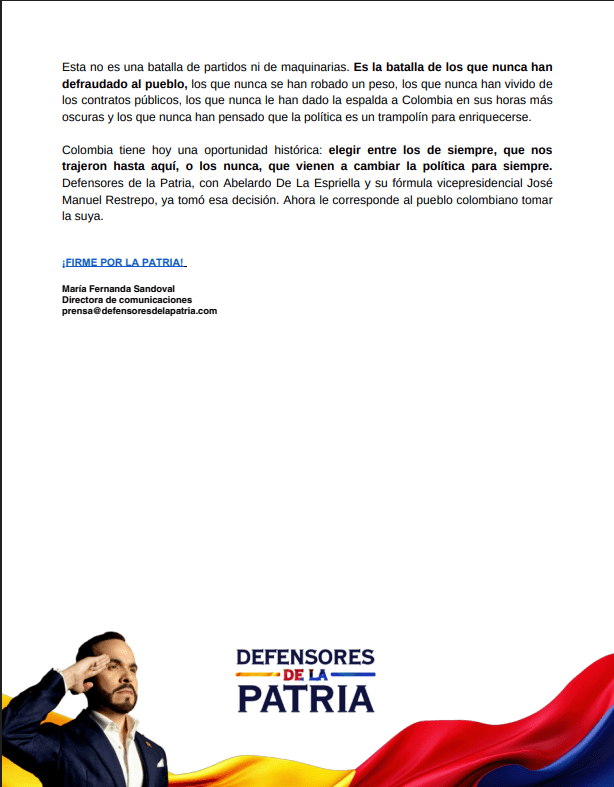 La postura actual se conecta con decisiones previas de su campaña. Desde 2025, De la Espriella optó por una candidatura por firmas y rechazó participar en consultas interpartidistas de centroderecha, pese a invitaciones de distintos sectores. También ha construido su discurso en torno a la crítica a la corrupción y a las estructuras políticas tradicionales.