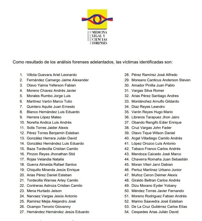 Varias familias ya han recibido los restos de sus seres queridos, mientras Medicina Legal avanza con los casos pendientes, estimando culminar la identificación de los 15 cuerpos restantes en un plazo máximo de 72 horas. La institución ha destacado la importancia de combinar rapidez con certeza científica y respeto por la dignidad humana.