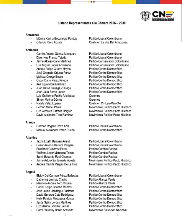 Bogotá, 30 de marzo de 2026 – El Consejo Nacional Electoral dejó prácticamente concluido el escrutinio oficial de la Cámara de Representantes elegida el pasado 8 de marzo y anunció que el próximo 6 de abril iniciará la revisión del Senado, en una transición que marca la fase final para definir la composición legal del Congreso 2026-2030.