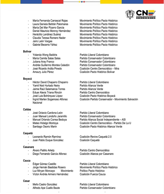 Según el balance presentado por el presidente del organismo, Cristian Quiroz, el conteo ya se completó en 30 departamentos tras más de dos semanas de trabajo. Solo permanecen pendientes tres circunscripciones, Cundinamarca, Chocó y la de colombianos en el exterior, cada una con situaciones distintas que han impedido el cierre total.