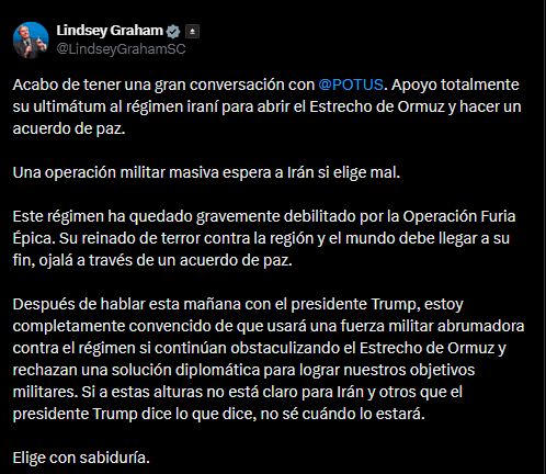 El tono se amplificó con declaraciones del senador republicano Lindsey Graham, aliado de Trump, quien habló de una posible “operación militar masiva” si Irán toma una “mala decisión”. Afirmó además que el presidente estadounidense está dispuesto a usar “fuerza militar abrumadora” si fracasan las vías diplomáticas.